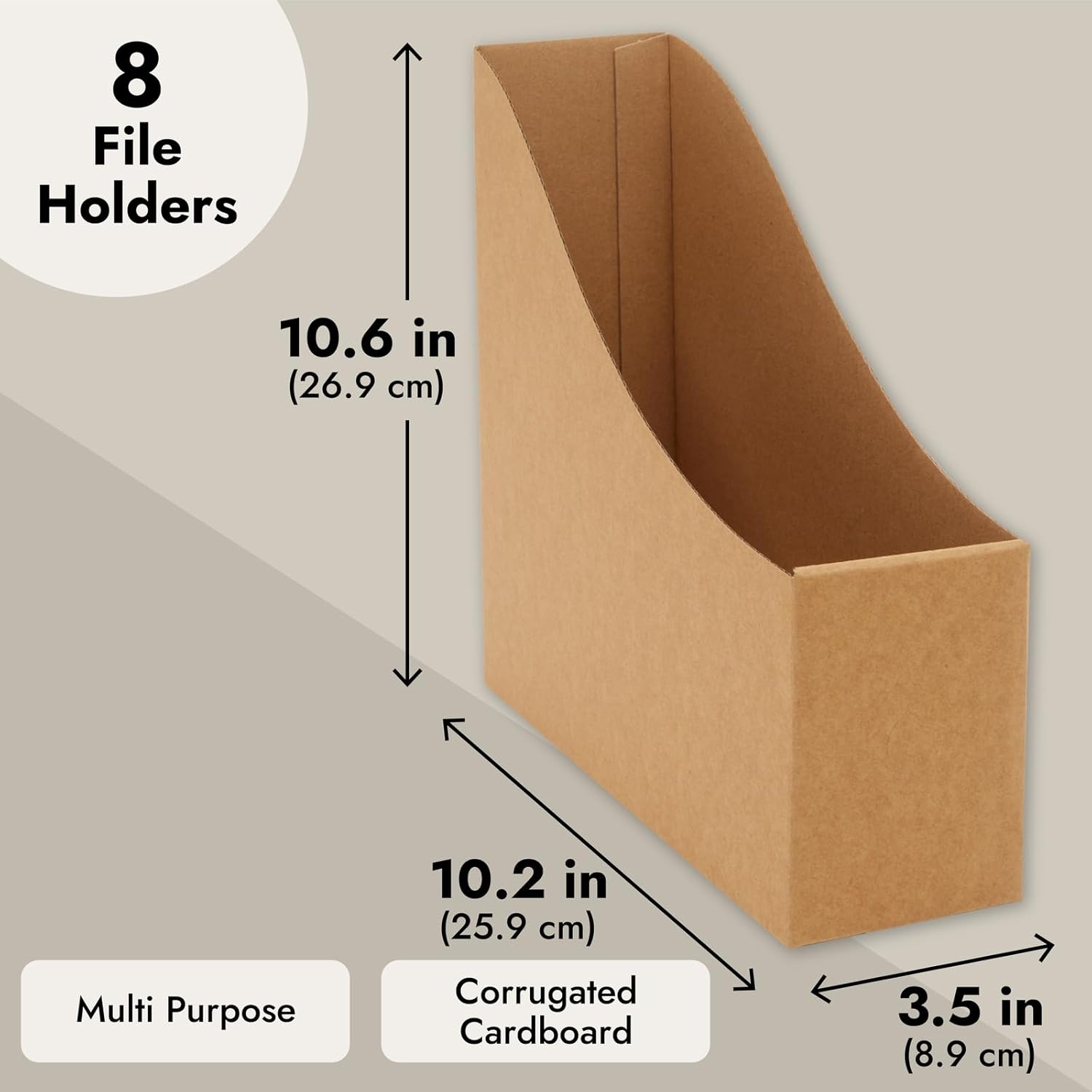 Keep your desk organized and clutter-free with the Juvale 8-Pack Kraft Paper Material Cardboard Magazine File Holder Boxes. Made from sturdy cardboard with a kraft paper finish, these file holders are perfect for storing documents, magazines, folders, and more. Each box comes with a label for easy identification, making it simple to find the files you need quickly. The neutral design and compact size make these file holders perfect for any workspace. Stay organized and stylish with the Juvale 8-Pack Kraft Paper Material Cardboard Magazine File Holder Boxes.