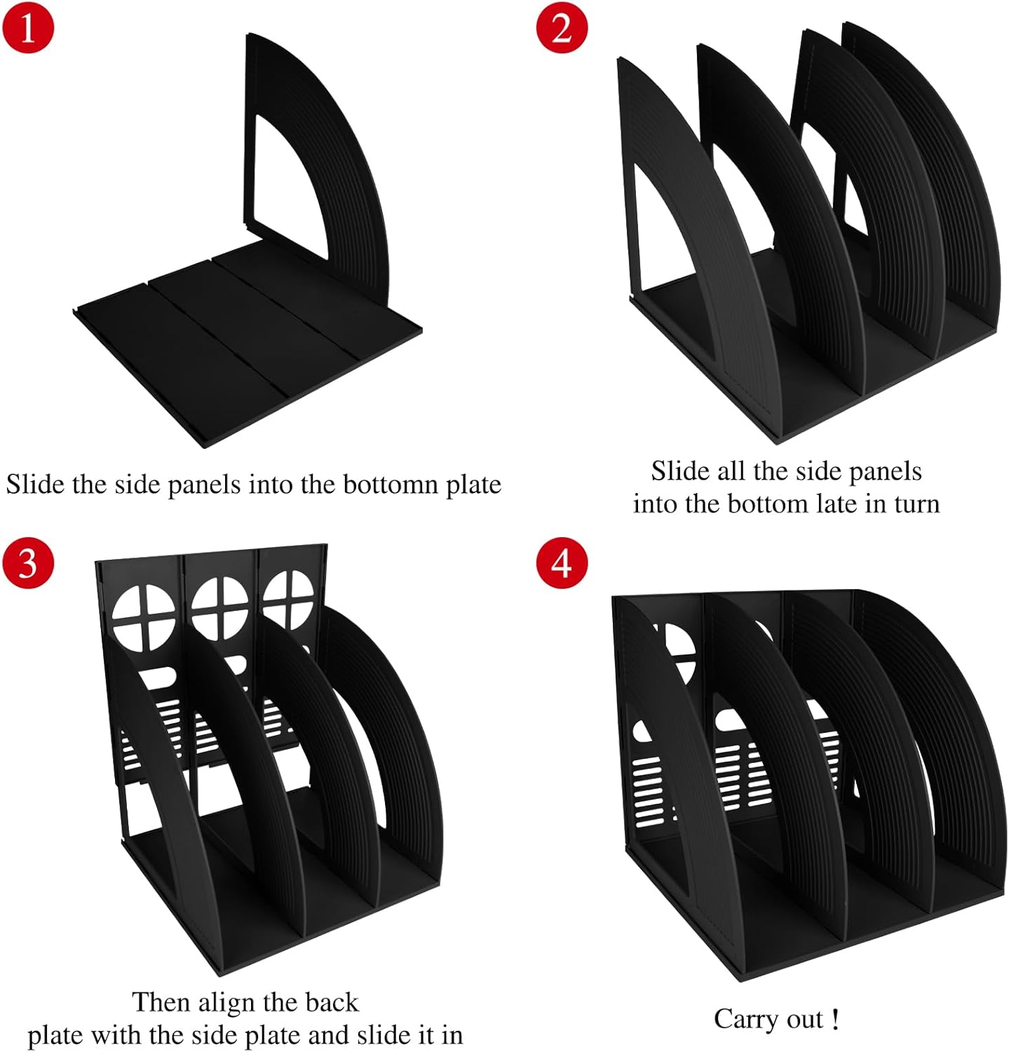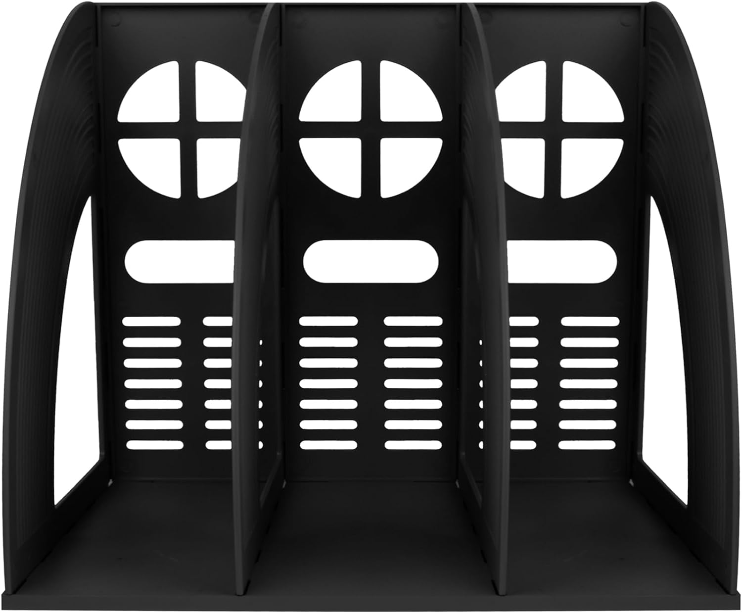 SAYEEC Magazine Holder Sturdy Binder Holder Desk File Sorter Plastic File Folder Organizer Stand Book Shelf Dividers Vertical Storage Rack Desktop Bookshelf Display Box for Office School Home (Black)